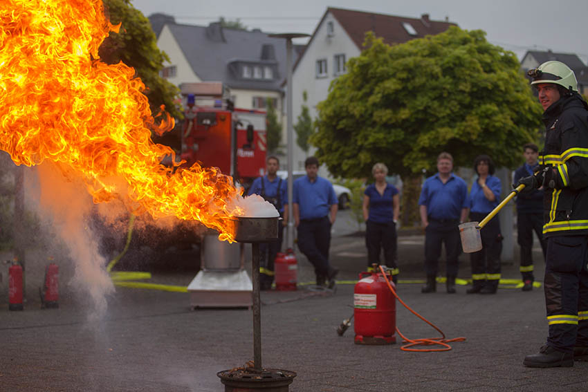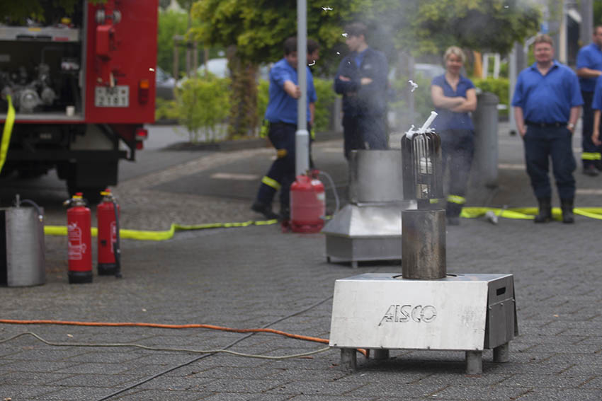 Eindrucksvoll war auch die Demonstration was passiert, wenn eine Spraydose zu heiß wird. Mit einem lauten Knall explodierte die Dose und Flammen waren zu sehen. Beim sommerlichen Grillen lauern ebenfalls Gefahren, die die Wehrleute demonstrierten.