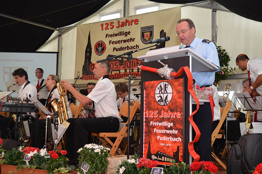 Der Kreisfeuerwehrtag fand in diesem Jahr im Rahmen des 125-jährigen Jubiläums der Freiwilligen Feuerwehr Puderbach am Sonntag, den 5. Juli im Festzelt statt. In 2014 mussten die Wehren im Kreis Neuwied 1.187 Mal ausrücken, davon waren 836 Fälle Hilfeleistungen.