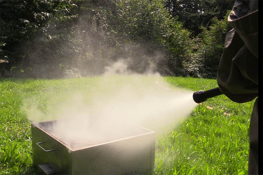 An einem Modellhaus wurde den Erwachsenen und auch Kindern erklärt, wie sich der Rauch in einem Wohnhaus ausbreitet und wie wichtig ein Brandmelder ist. Geübt konnte der Umgang mit dem Feuerlöscher werden. Wann hat man schon mal Gelegenheit ein Feuer mit dem Feuerlöscher aus zu machen. Hier gab es Hilfestellung und Erklärungen von den Wehrleuten.