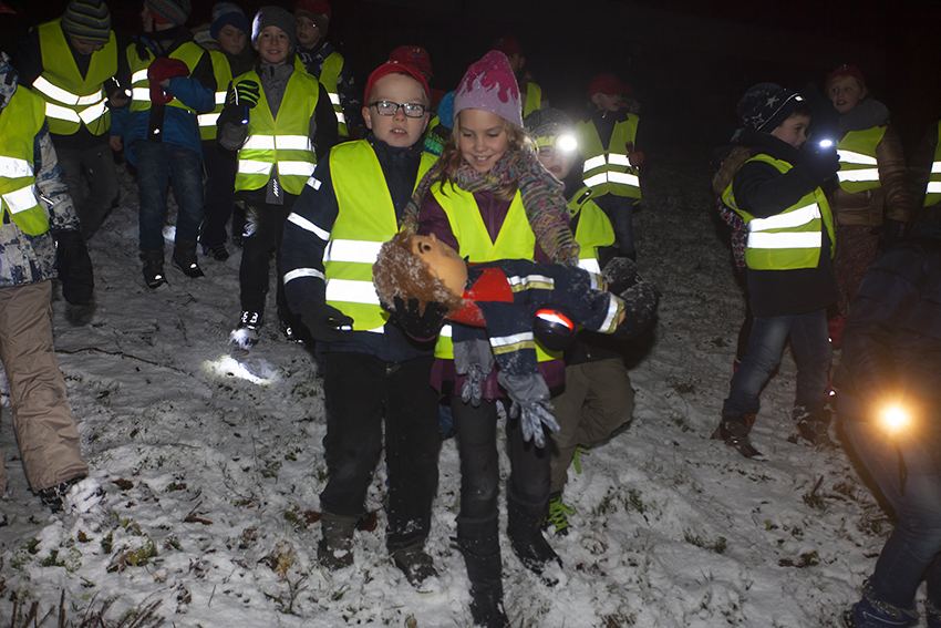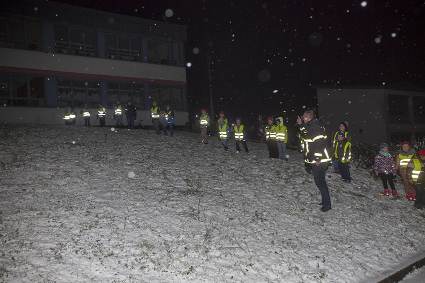 Dieter Stein unterwies den Feuerwehrnachwuchs, wie eine solche Suche vonstattengeht und bei Schneetreiben machte sich der Nachwuchs auf die Suche. Mit vereinten Kräften wurde „Flori“ dann in einem Gebüsch wohlbehalten gefunden, wo er sich versteckt hatte.