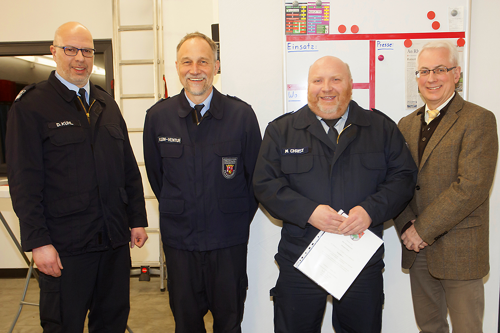 Hendrick Kind und Maximilian Baier wurden zum Feuerwehrmann befördert. Hauptfeuerwehrmann sind nun Patric Steffen und Klaus Müller. Zum Löschmeister wurde Matthias Bockmühl befördert. Er wurde gleichzeitig auch für seine 25-jährige Zugehörigkeit mit dem silbernen Feuerwehr-Ehrenzeichen ausgezeichnet. Zum Truppmann wurde Jan Thiel bestellt.
