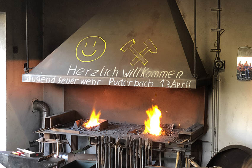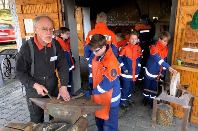Nur wenige hundert Meter entfernt von der historischen Grubenschmiede wurde in der Schmiede mit den Kindern gemeinsam ein Souvenir geschmiedet. An der glühenden Esse konnten sie ihren eigenen Schmuckanhänger herstellen und von den ehrenamtlichen Schmieden alles Wichtige zu diesem uralten Handwerk erfahren. Rundum war es ein gelungener Ausflug, nicht nur für die Jugendlichen, sondern auch für die Betreuer.