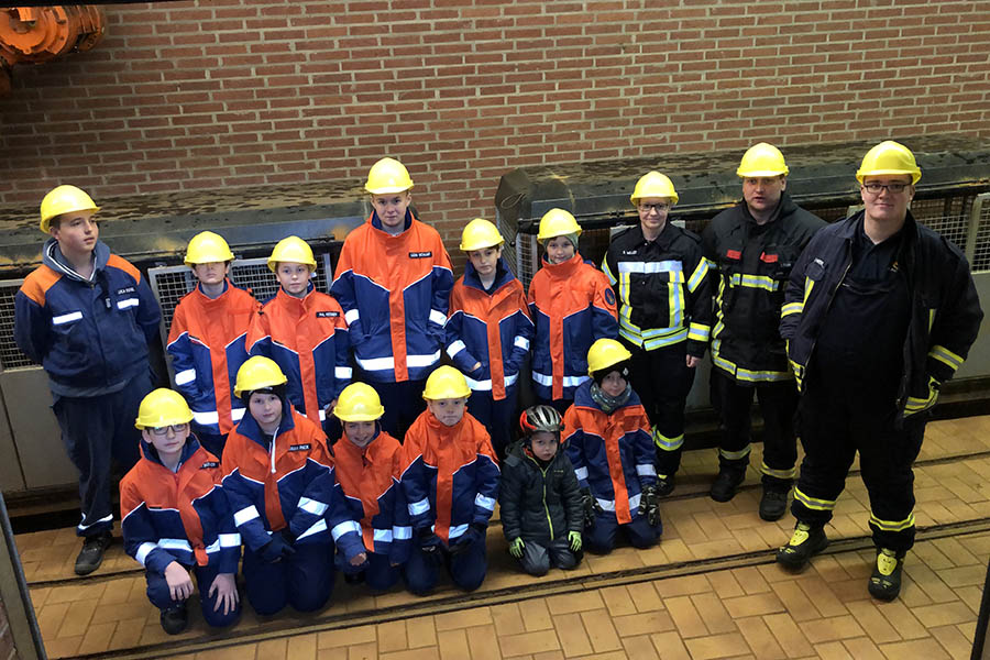 Die Jugendfeuerwehr besuchte die Grube Bindweide. Dort angekommen teilten sich die Teilnehmer in zwei Gruppen auf. Mit Helm ging es in das alte Bergwerk. Mit einer Grubenbahn erreichten die Teilnehmer die Abbaustätten tief im Berg. In den alten Stollen und Abbauen wurde die harte und gefährliche Arbeit der bis zu 900 Bergleute der Grube Bindweide richtig erlebbar.