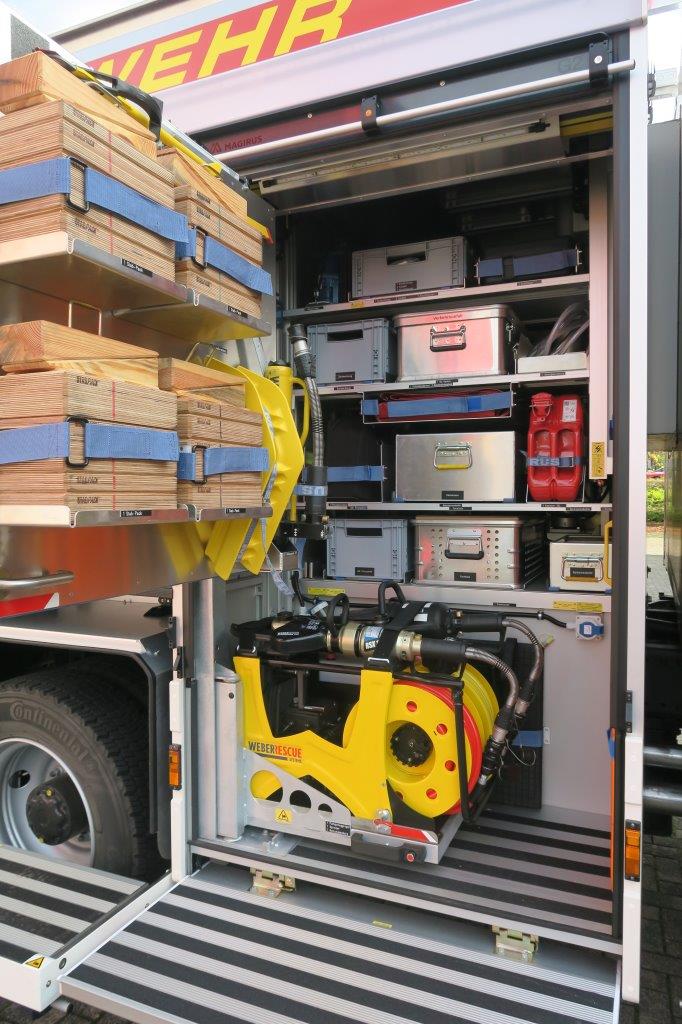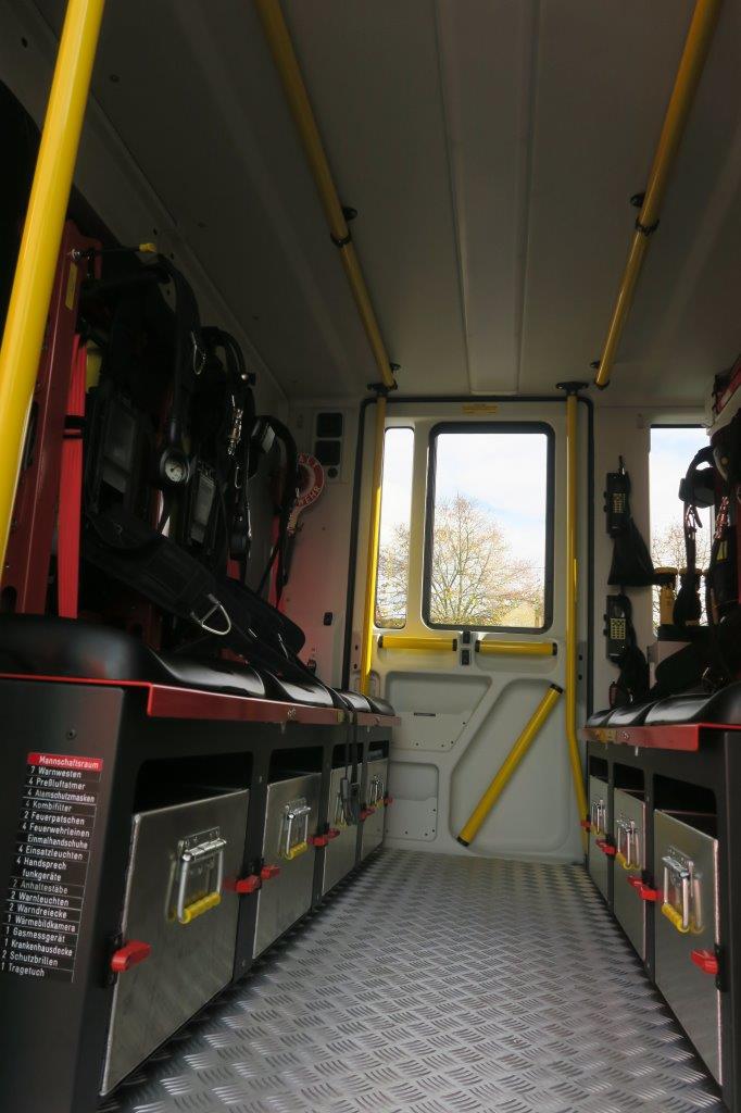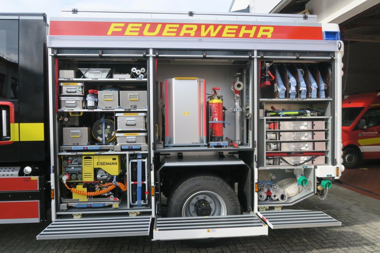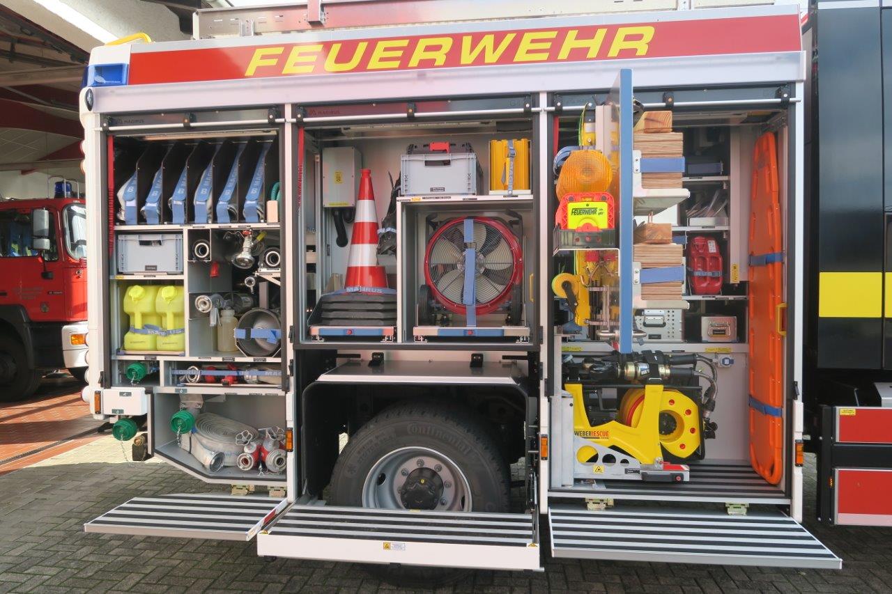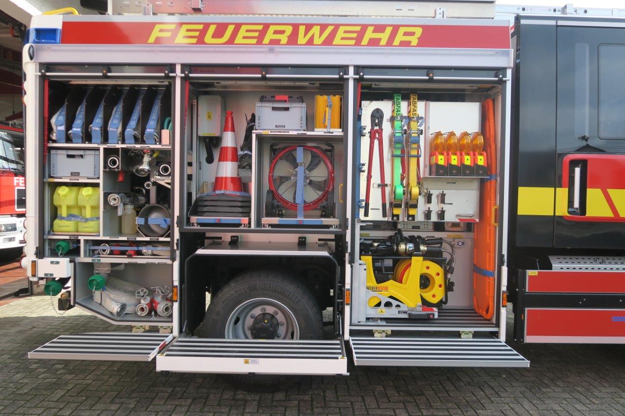 Beladung: Feuerlöschkreiselpumpe FPN 10-2000; Löschwassertank 1600 L; Schaummittel 140 L; Sprungretter SP 16; 4 Atemschutzgeräte; Hydraulischer Rettungssatz; Stab Fast Stabilisierungssystem; Lichtmast; Stromerzeuger; Tauchpumpe; Akkuschrauber; Türöffnungssatz; 4- teilige Steckleiter; Säbelsäge; Motorkettensäge; Akkukettensäge; Elektro-Hochleistungslüfter; Kaminfegerwerkzeug